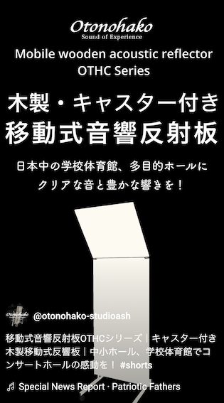 In facilities that do not have a permanent stage acoustic reflector, such as multi-purpose small to medium-sized halls, community centers, public halls, schools, auditoriums, gymnasiums, event venues, and lobbies, when performing so-called "live" performances that do not use electrical sound systems, such as classical music, vocal music, choirs, and brass bands, the "sound" from the stage does not reach the audience seats efficiently and diffuses in all directions, making it difficult to obtain rich resonance and clear sound.