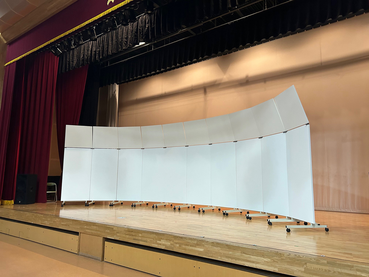 We have now created a high-performance wooden acoustic reflector with casters, which has been long awaited by performers, music groups, facility staff, and school music teachers.