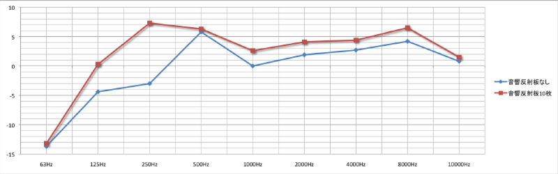 ・Comparison of level measurements with sine waves and no soundboard at 1,000Hz, set to 0db