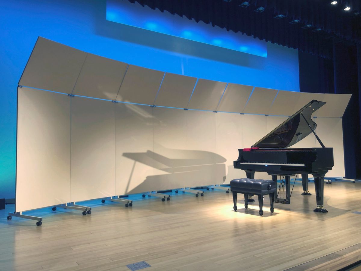 An acoustic reflector is a type of stage mechanism that effectively and efficiently reflects the "sound" played on stage, increasing the volume and reverberation. Concert halls and other venues dedicated to music are designed with meticulous calculations of their acoustic characteristics.
